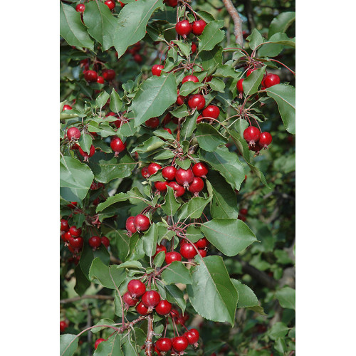 Selkirk Flowering Crab is a hardy ornamental crabapple developed in Canada, known for its profuse blooms and small fruit, ideal for landscapes.Hardy to USDA Zone 2-7, vigorous and spreading. Good resistance to scab, fire blight, and rust; tolerant of urban conditions.