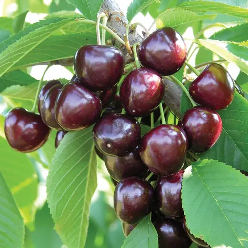 Grow in full sun with well-drained soil; self-fertile. Large, glossy near-black fruit with firm, juicy flesh and intensely sweet flavor with spice hints.