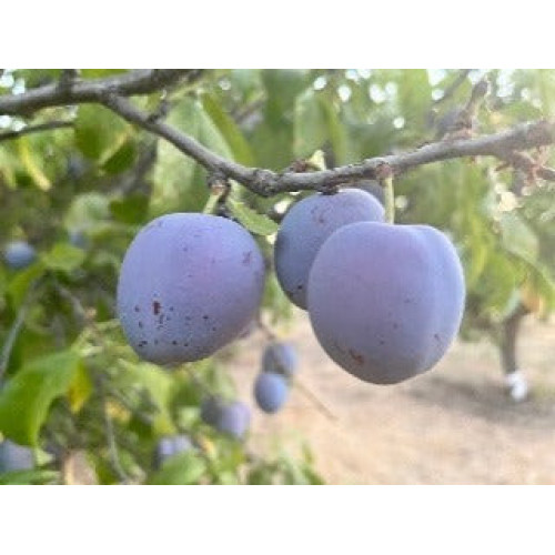 Grow in full sun with well-drained soil. Medium purple freestone fruit with amber flesh, sweet juicy flavor.